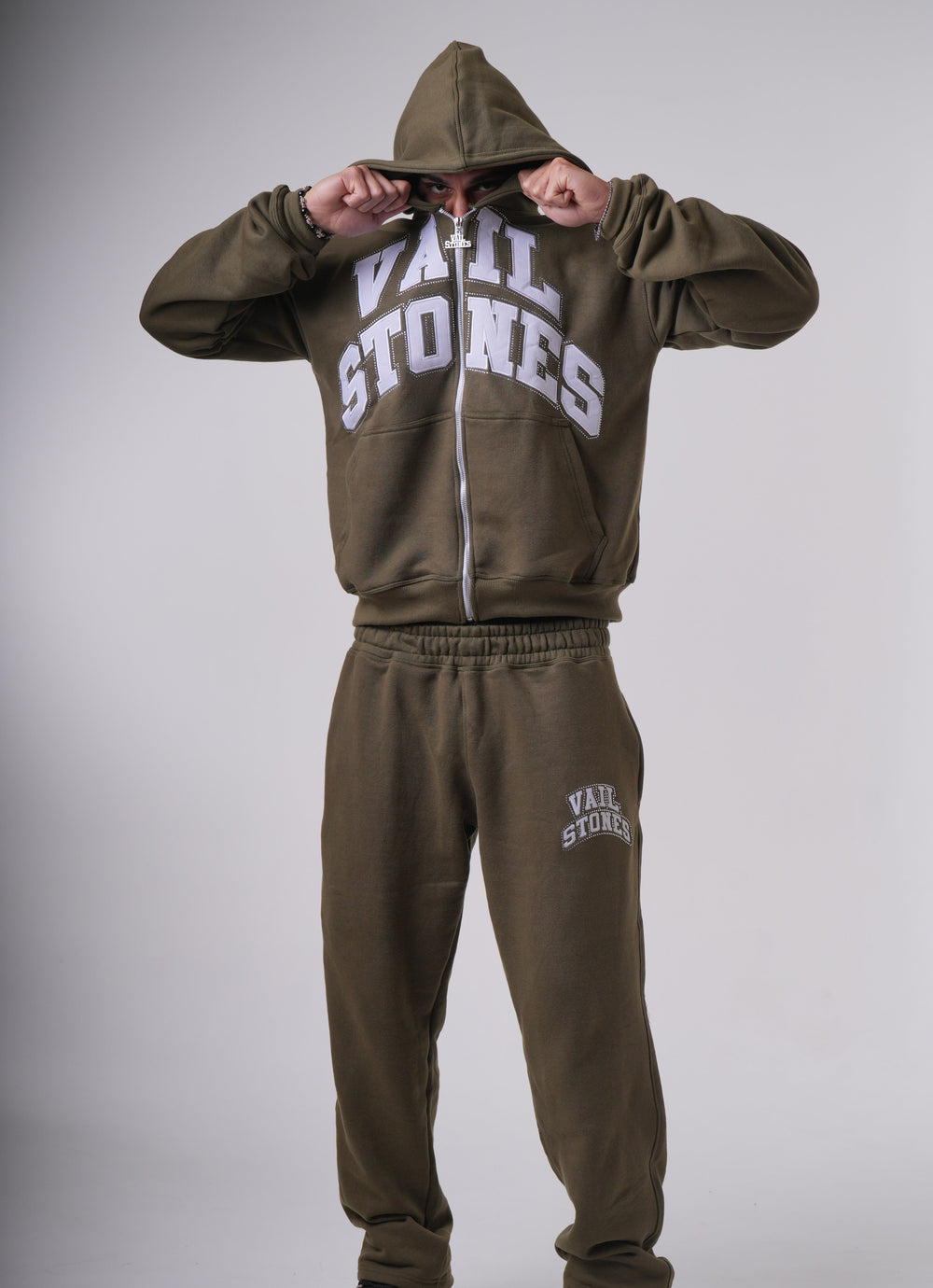VS ZIPPED RHINESTONES SWEATSUIT (DARK GRAY)